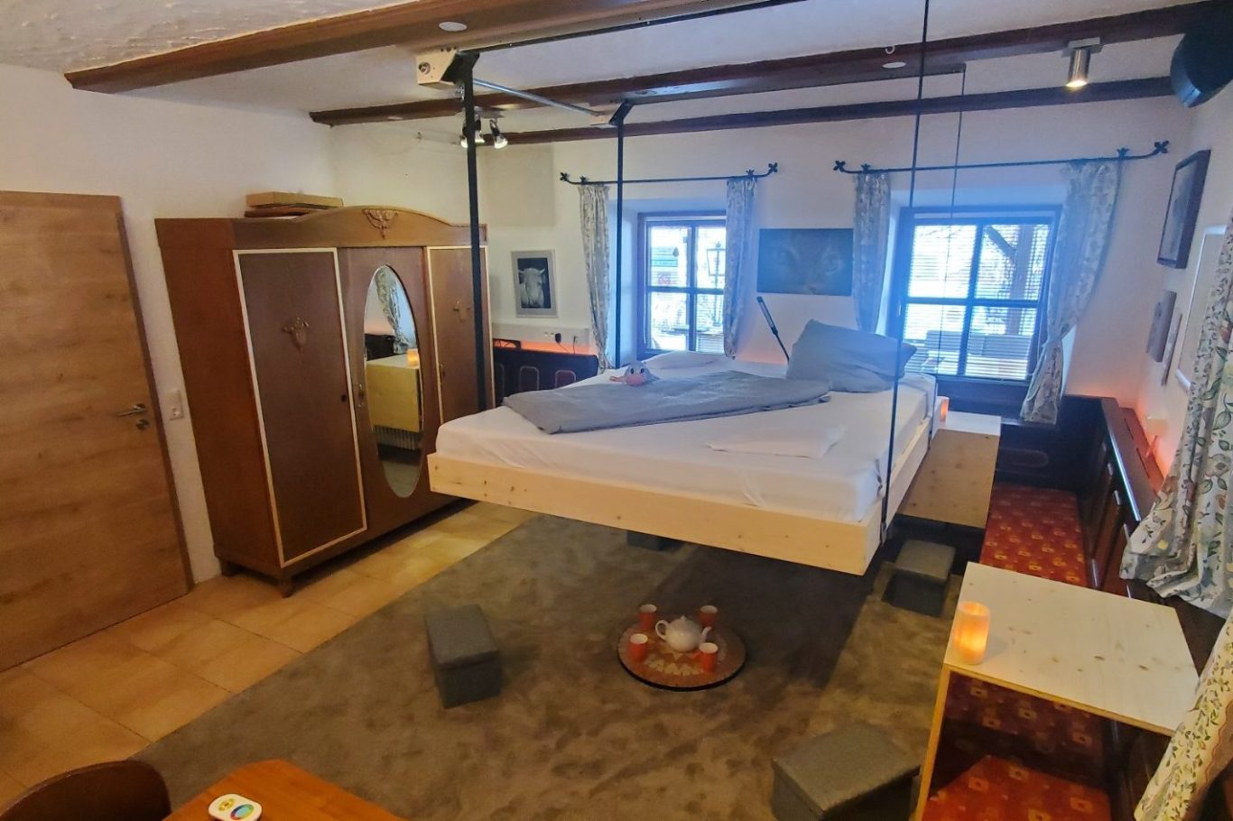 Das Gebäude, ein beeindruckendes 800 Jahre altes Anwesen, wurde liebevoll renoviert und mit modernster Technik ausgestattet. Es ist CO₂-neutral dank regenerativem Flüssiggas und einer PV-Anlage. Highspeed-Internet? Kein Problem! Mit Starlink, VDSL und Netzwerkzugang in allen Räumen seid ihr bestens für Zoom-Calls und Kreativ-Sessions gerüstet.